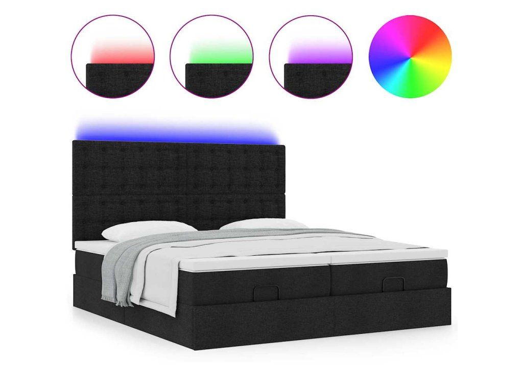 - Světla LED pro příjemnou atmosféru: Tato postel je vybavena LED osvětlením, které lze snadno nastavit a vytvořit tak individuální světelnou atmosféru. Umožňuje přizpůsobit režimy, barvy a jas, abyste si vytvořili příjemnou atmosféru svého interiéru.