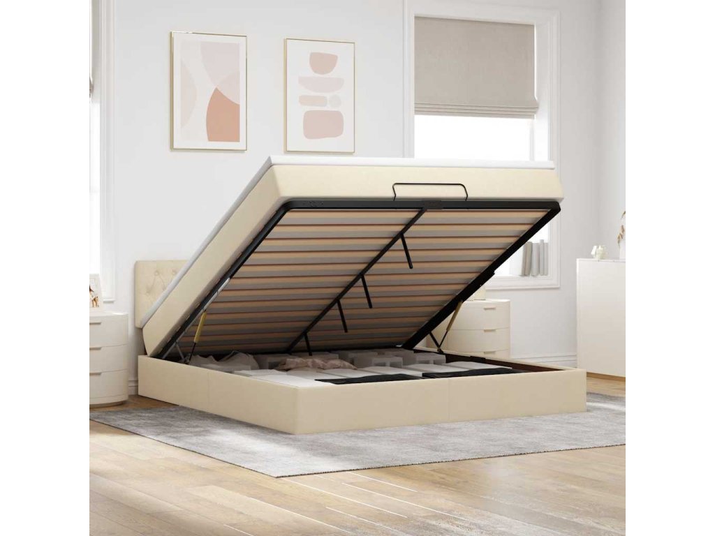 Použijte tento otomanský rám postele s matrací a užijte si klidný spánek! Nabízí vám úložné řešení i pohodlný spánek.
