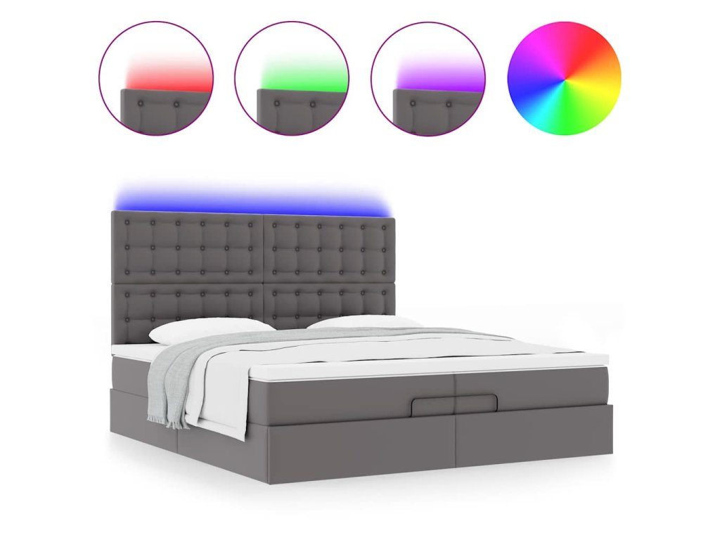 - Světla LED pro příjemnou atmosféru: Tato postel je vybavena LED osvětlením, které lze snadno nastavit a vytvořit tak individuální světelnou atmosféru. Umožňuje přizpůsobit režimy, barvy a jas, abyste si vytvořili příjemnou atmosféru svého interiéru.