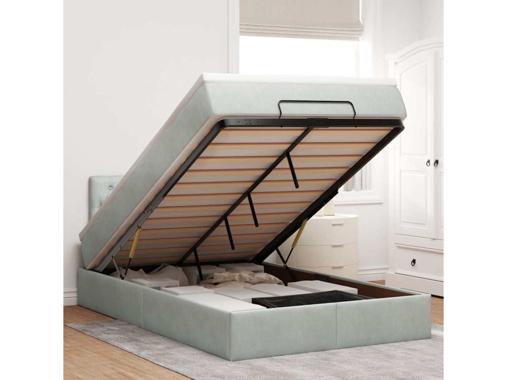 - Dostatek úložného prostoru pod postelí: Díky hydraulickému zvedacímu mechanismu nabízí rám postele dostatek úložného prostoru pod postelí, čímž maximalizuje prostor, aniž by zabíral další podlahovou plochu. Jednoduchým zatažením za rukojeť se roštová základna hladce zvedne a umožní vám rychle a bez námahy vyndat vaše věci.