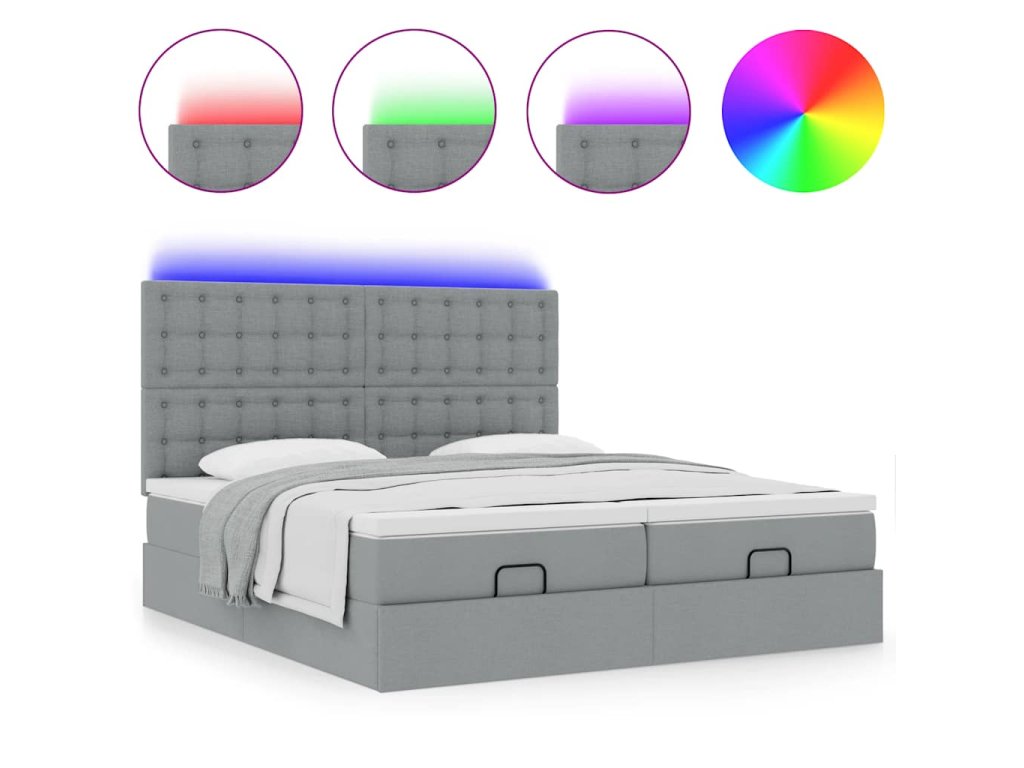 - Světla LED pro příjemnou atmosféru: Tato postel je vybavena LED osvětlením, které lze snadno nastavit a vytvořit tak individuální světelnou atmosféru. Umožňuje přizpůsobit režimy, barvy a jas, abyste si vytvořili příjemnou atmosféru svého interiéru.