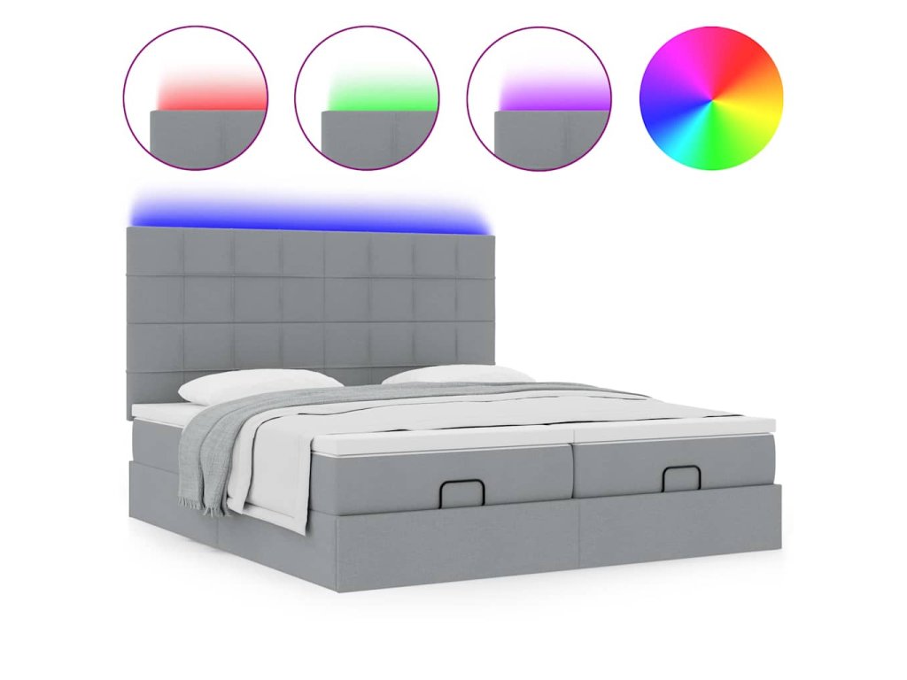 - Světla LED pro příjemnou atmosféru: Tato postel je vybavena LED osvětlením, které lze snadno nastavit a vytvořit tak individuální světelnou atmosféru. Umožňuje přizpůsobit režimy, barvy a jas, abyste si vytvořili příjemnou atmosféru svého interiéru.