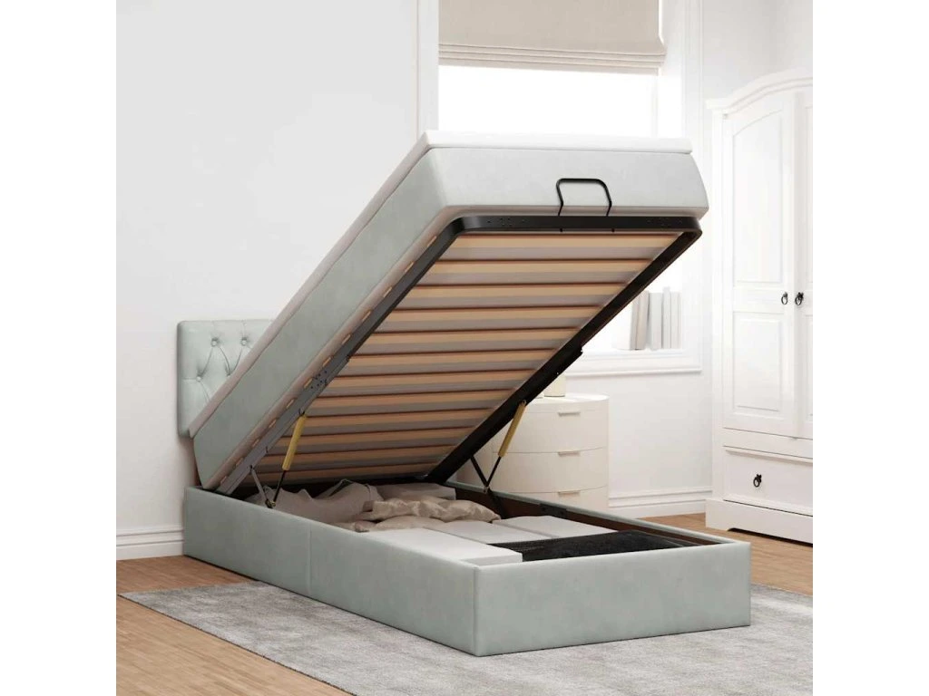 Použijte tento otomanský rám postele s matrací a užijte si klidný spánek! Nabízí vám úložné řešení i pohodlný spánek.