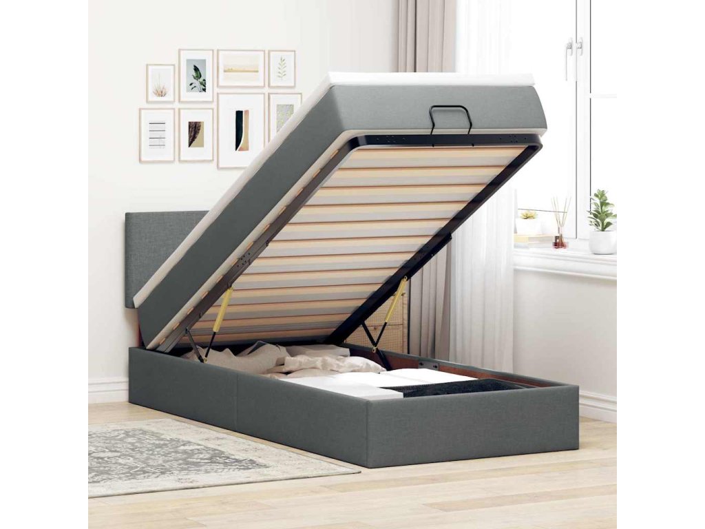 Použijte tento otomanský rám postele s matrací a užijte si klidný spánek! Nabízí vám úložné řešení i pohodlný spánek.