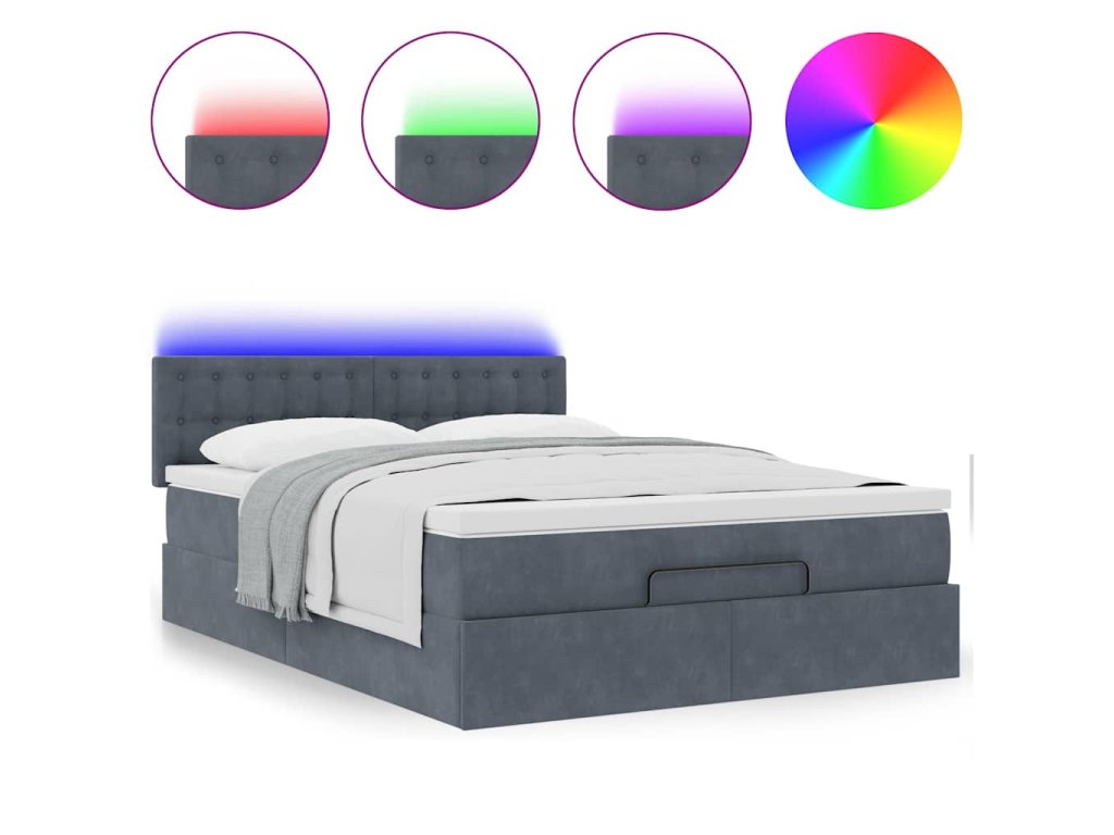 - Světla LED pro příjemnou atmosféru: Tato postel je vybavena LED osvětlením, které lze snadno nastavit a vytvořit tak individuální světelnou atmosféru. Umožňuje přizpůsobit režimy, barvy a jas, abyste si vytvořili příjemnou atmosféru svého interiéru.