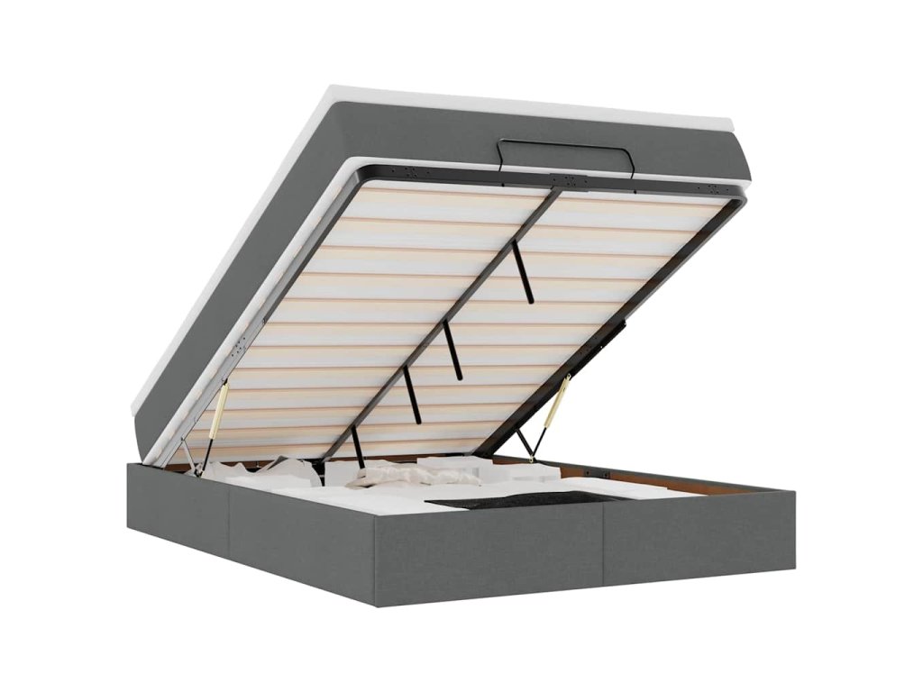 - Dostatek úložného prostoru pod postelí: Díky hydraulickému zvedacímu mechanismu nabízí rám postele dostatek úložného prostoru pod postelí, čímž maximalizuje prostor, aniž by zabíral další podlahovou plochu. Jednoduchým zatažením za rukojeť se roštová základna hladce zvedne a umožní vám rychle a bez námahy vyndat vaše věci.