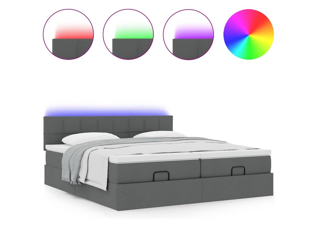 - Světla LED pro příjemnou atmosféru: Tato postel je vybavena LED osvětlením, které lze snadno nastavit a vytvořit tak individuální světelnou atmosféru. Umožňuje přizpůsobit režimy, barvy a jas, abyste si vytvořili příjemnou atmosféru svého interiéru.
