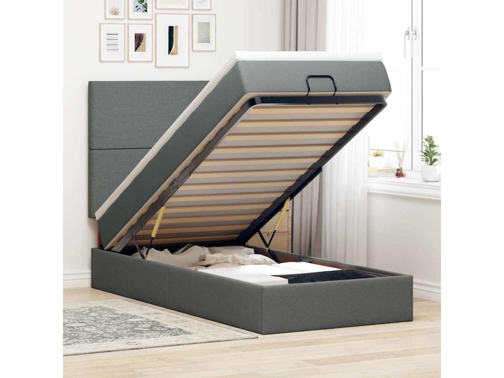 Použijte tento otomanský rám postele s matrací a užijte si klidný spánek! Nabízí vám úložné řešení i pohodlný spánek.