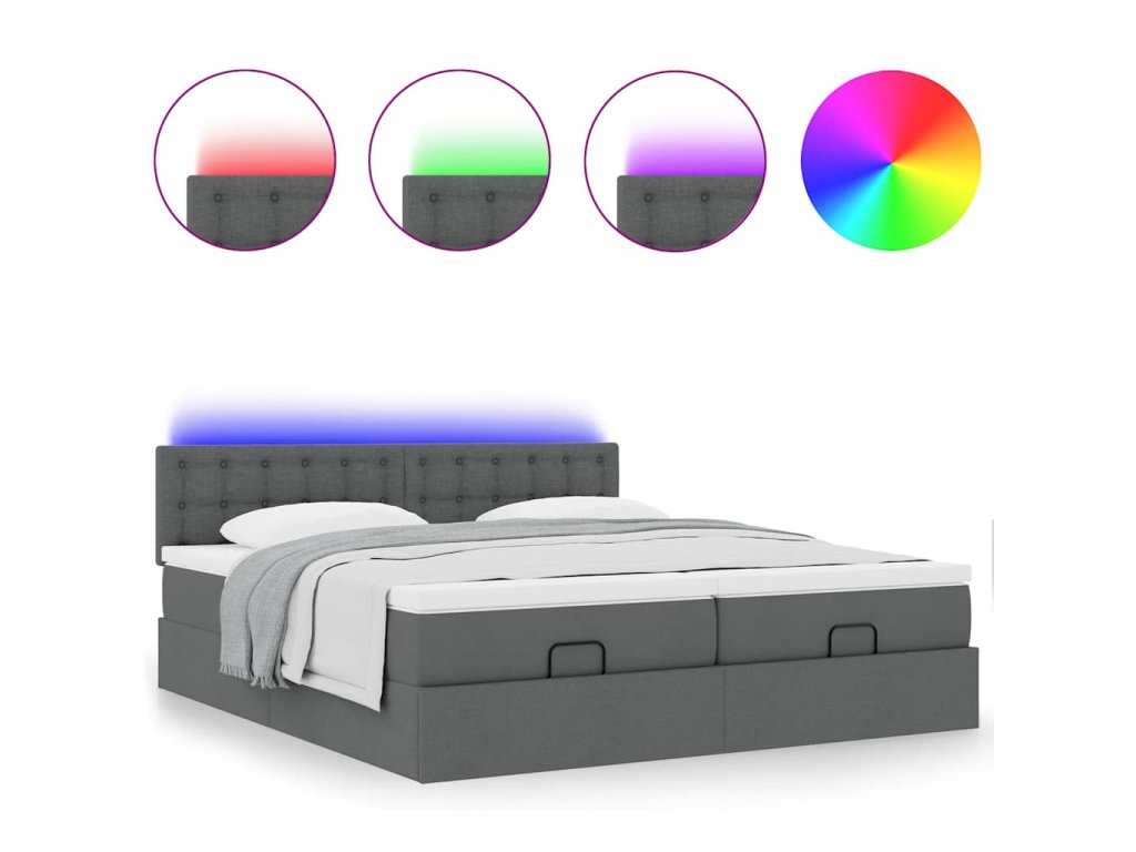 - Světla LED pro příjemnou atmosféru: Tato postel je vybavena LED osvětlením, které lze snadno nastavit a vytvořit tak individuální světelnou atmosféru. Umožňuje přizpůsobit režimy, barvy a jas, abyste si vytvořili příjemnou atmosféru svého interiéru.