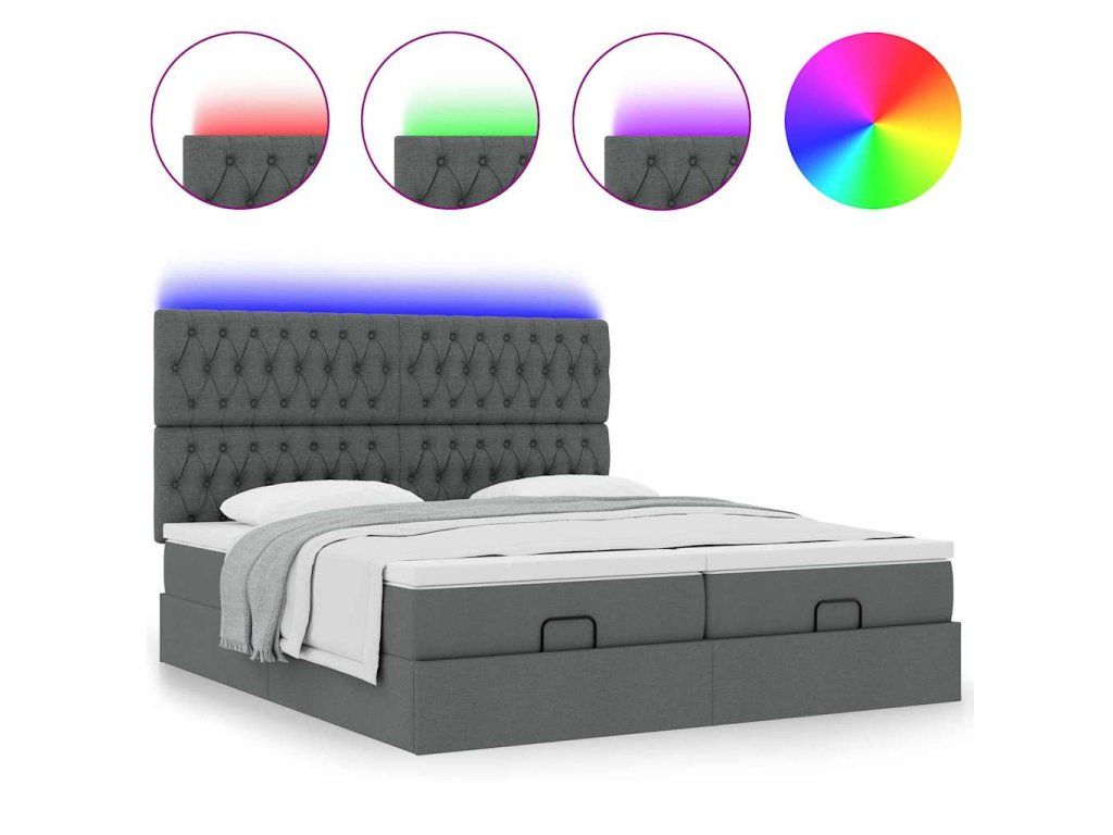 - Světla LED pro příjemnou atmosféru: Tato postel je vybavena LED osvětlením, které lze snadno nastavit a vytvořit tak individuální světelnou atmosféru. Umožňuje přizpůsobit režimy, barvy a jas, abyste si vytvořili příjemnou atmosféru svého interiéru.