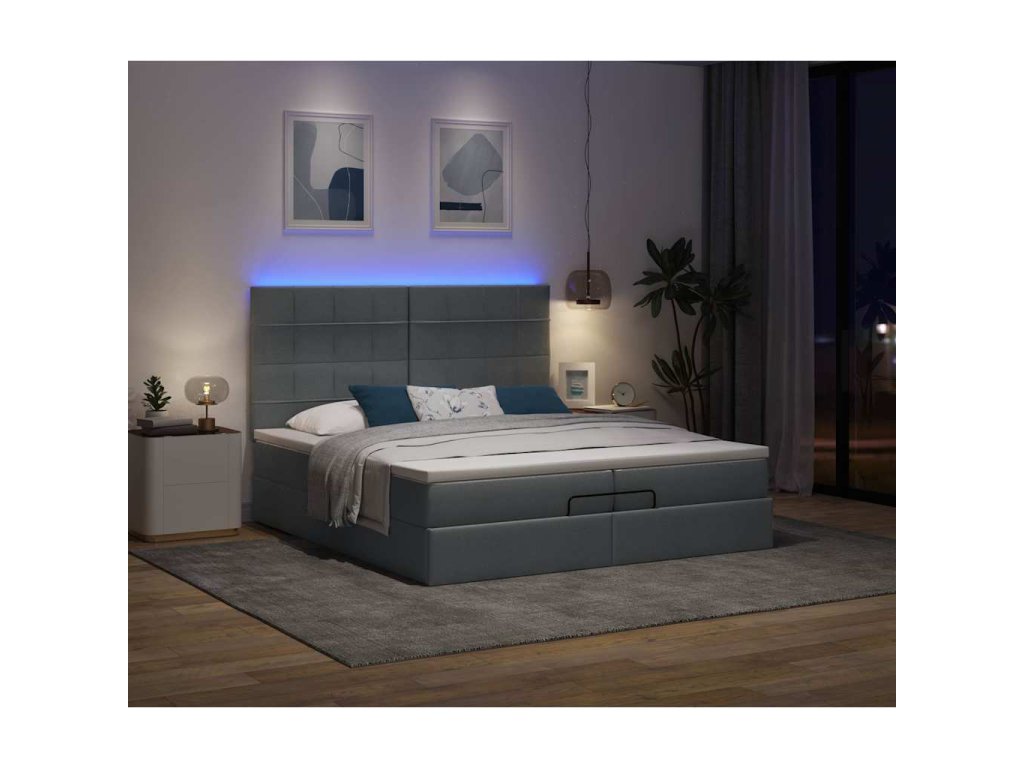 - Světla LED pro příjemnou atmosféru: Tato postel je vybavena LED osvětlením, které lze snadno nastavit a vytvořit tak individuální světelnou atmosféru. Umožňuje přizpůsobit režimy, barvy a jas, abyste si vytvořili příjemnou atmosféru svého interiéru.