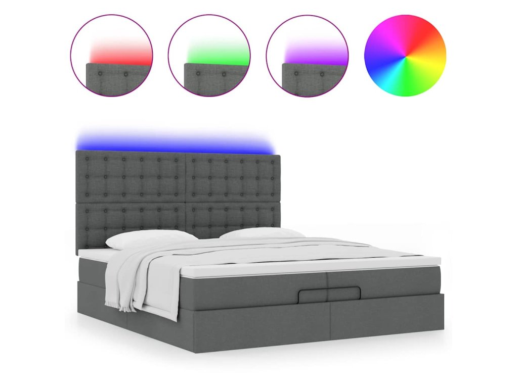 - Světla LED pro příjemnou atmosféru: Tato postel je vybavena LED osvětlením, které lze snadno nastavit a vytvořit tak individuální světelnou atmosféru. Umožňuje přizpůsobit režimy, barvy a jas, abyste si vytvořili příjemnou atmosféru svého interiéru.