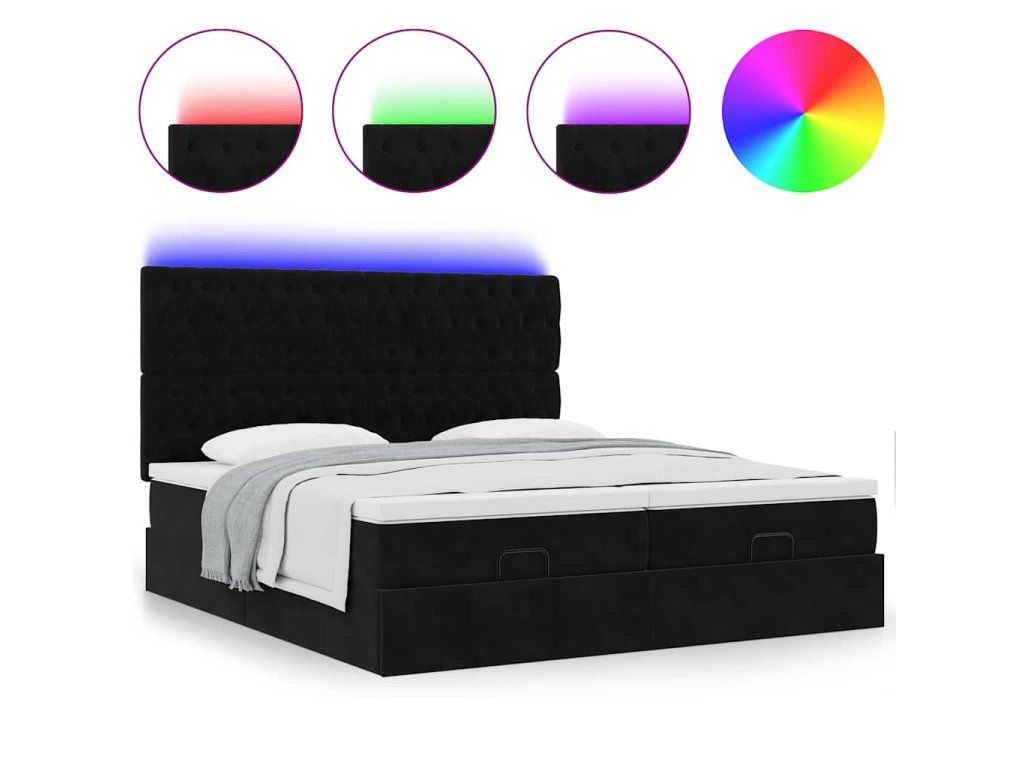 - Světla LED pro příjemnou atmosféru: Tato postel je vybavena LED osvětlením, které lze snadno nastavit a vytvořit tak individuální světelnou atmosféru. Umožňuje přizpůsobit režimy, barvy a jas, abyste si vytvořili příjemnou atmosféru svého interiéru.