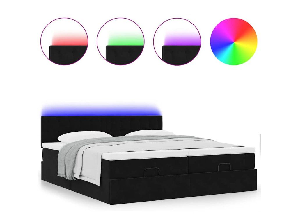- Světla LED pro příjemnou atmosféru: Tato postel je vybavena LED osvětlením, které lze snadno nastavit a vytvořit tak individuální světelnou atmosféru. Umožňuje přizpůsobit režimy, barvy a jas, abyste si vytvořili příjemnou atmosféru svého interiéru.