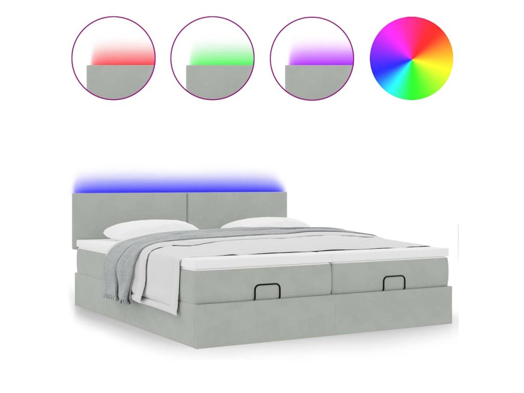 - Světla LED pro příjemnou atmosféru: Tato postel je vybavena LED osvětlením, které lze snadno nastavit a vytvořit tak individuální světelnou atmosféru. Umožňuje přizpůsobit režimy, barvy a jas, abyste si vytvořili příjemnou atmosféru svého interiéru.
