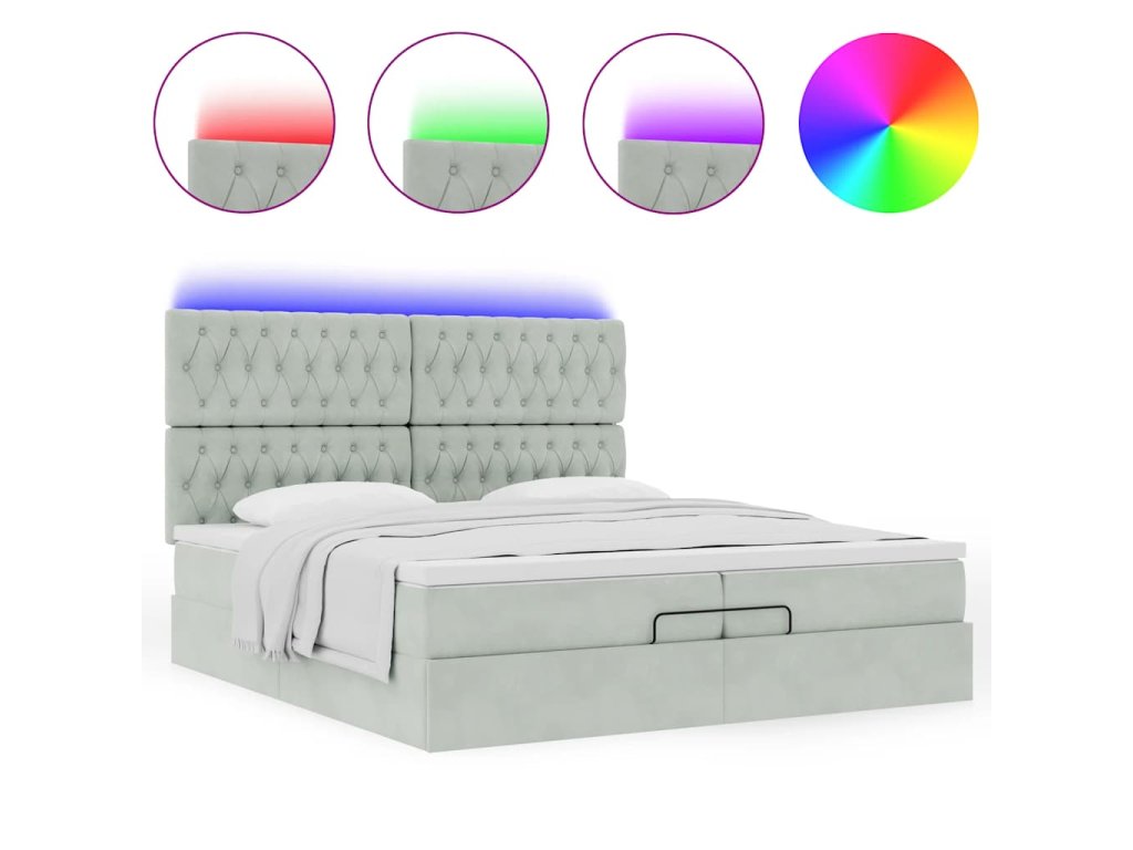 - Světla LED pro příjemnou atmosféru: Tato postel je vybavena LED osvětlením, které lze snadno nastavit a vytvořit tak individuální světelnou atmosféru. Umožňuje přizpůsobit režimy, barvy a jas, abyste si vytvořili příjemnou atmosféru svého interiéru.