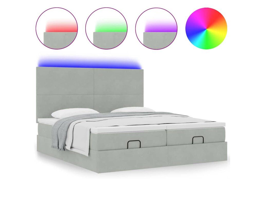 - Světla LED pro příjemnou atmosféru: Tato postel je vybavena LED osvětlením, které lze snadno nastavit a vytvořit tak individuální světelnou atmosféru. Umožňuje přizpůsobit režimy, barvy a jas, abyste si vytvořili příjemnou atmosféru svého interiéru.
