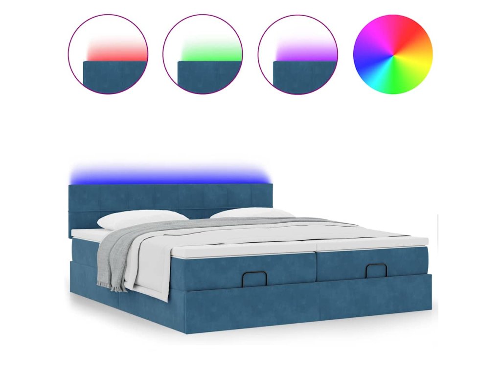 - Světla LED pro příjemnou atmosféru: Tato postel je vybavena LED osvětlením, které lze snadno nastavit a vytvořit tak individuální světelnou atmosféru. Umožňuje přizpůsobit režimy, barvy a jas, abyste si vytvořili příjemnou atmosféru svého interiéru.