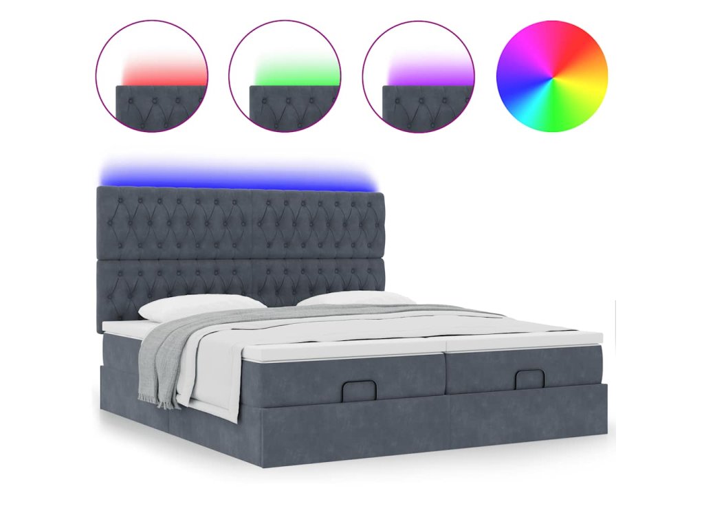 - Světla LED pro příjemnou atmosféru: Tato postel je vybavena LED osvětlením, které lze snadno nastavit a vytvořit tak individuální světelnou atmosféru. Umožňuje přizpůsobit režimy, barvy a jas, abyste si vytvořili příjemnou atmosféru svého interiéru.