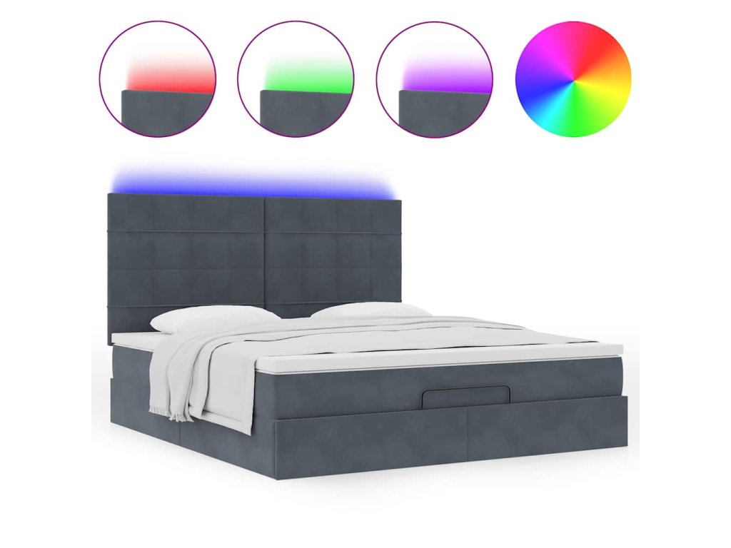 - Světla LED pro příjemnou atmosféru: Tato postel je vybavena LED osvětlením, které lze snadno nastavit a vytvořit tak individuální světelnou atmosféru. Umožňuje přizpůsobit režimy, barvy a jas, abyste si vytvořili příjemnou atmosféru svého interiéru.