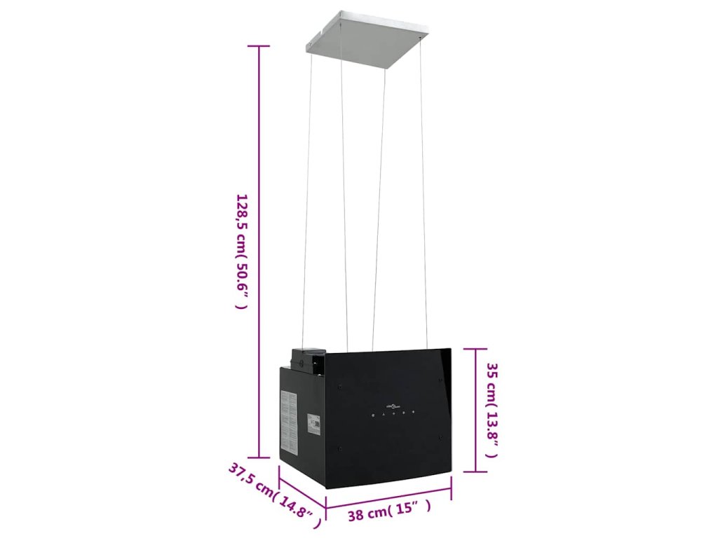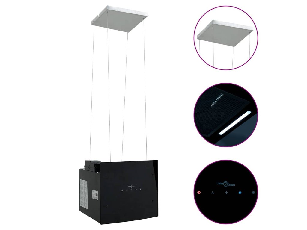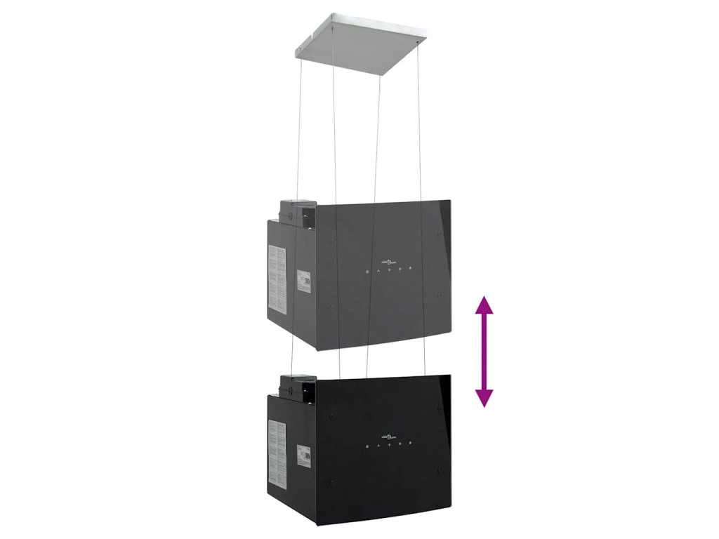 - Tato ostrůvková digestoř je určená k zavěšení na strop a upevňuje se na nerezovou desku. Délku ocelových závěsných lan si můžete upravit tak, aby byl odsavač par zavěšený v optimální výšce.