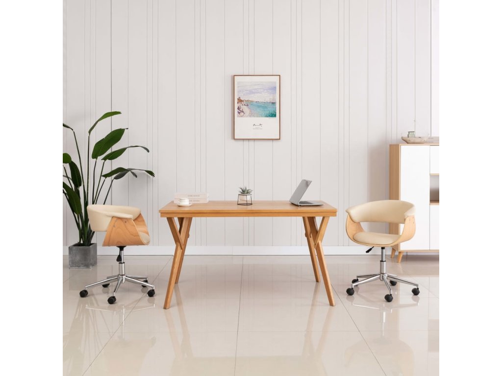 Židle nabízí pohodlné místo pro práci ve studovně či odpočinek v obývacím pokoji. Sedák i opěradlo mají ergonomický tvar, jsou čalouněné měkkou umělou kůží a polstrované molitanem. Bude se vám tedy sedět jako v bavlnce. Dřevěný rám a kovové nohy navíc nábytku přidávají na odolnosti a působí velice atraktivním dojmem. Židle se otáčí o 360 stupňů a je vybavená mechanismem s plynovým pístem, který vám umožní upravit si její výšku.