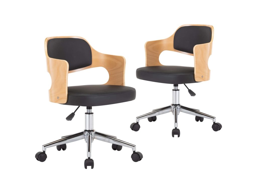 Sedák i opěradlo jsou pro vaše pohodlí čalouněné umělou kůží, která se také snadno čistí. Dřevěný rám zvyšuje stabilitu nábytku. Sedák s opěradlem poskytují vašim zádům skvělou oporu a snižují tlak na páteř. 5 pojezdových koleček zaručuje nenáročné přesouvání židle, zatímco mechanismus s plynovým pístem zase umožňuje upravit její výšku. Tyto otočné židle navíc stylově oživí každou domácnost i kancelář.