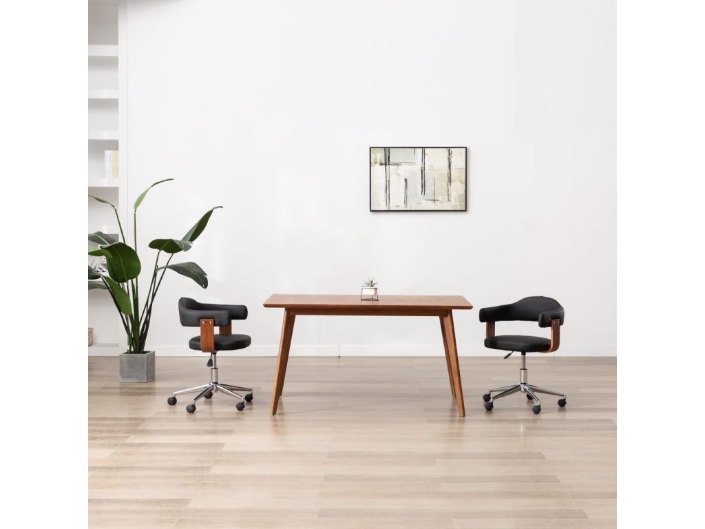 Židle vám poskytnou optimální pohodlí nejen při rodinné večeři, ale i při čtení či odpočinku v obývacím pokoji. Sedák a opěradlo mají ergonomický tvar a jsou čalouněné měkkou umělou kůží, takže se vám na židlích bude velice příjemně sedět. Dřevěný rám a ocelové nohy prodlužují jejich životnost a působí mimořádně atraktivním dojmem. Židli lze otáčet o 360 stupňů a výškově nastavovat prostřednictvím mechanismu s plynovým pístem.