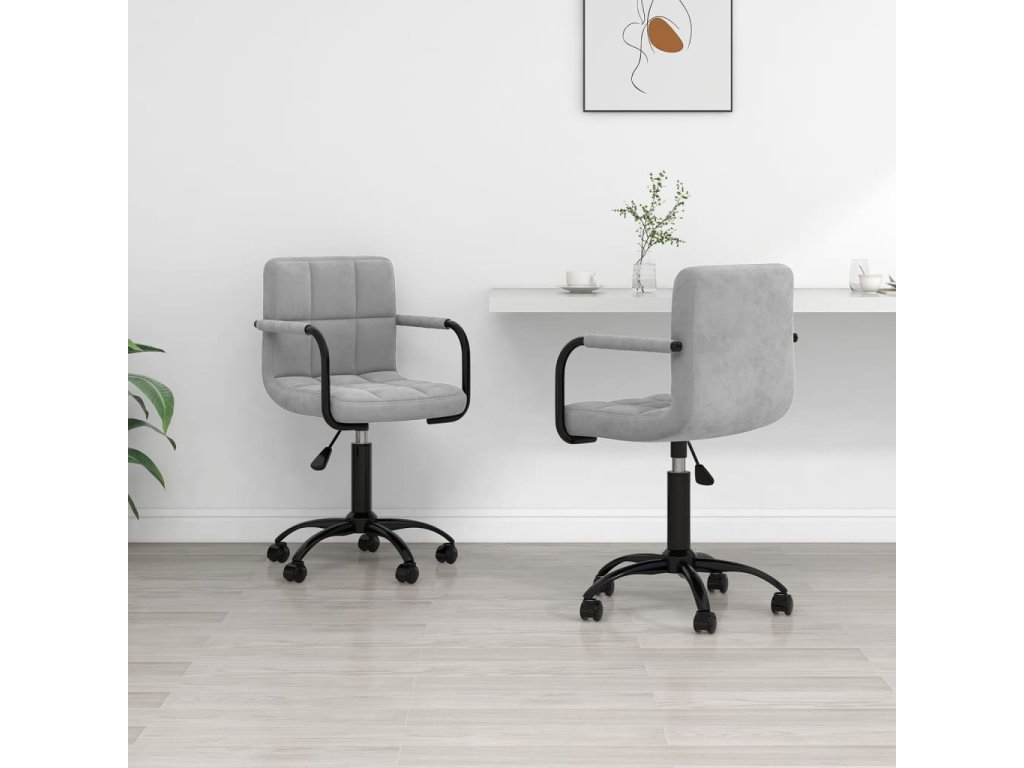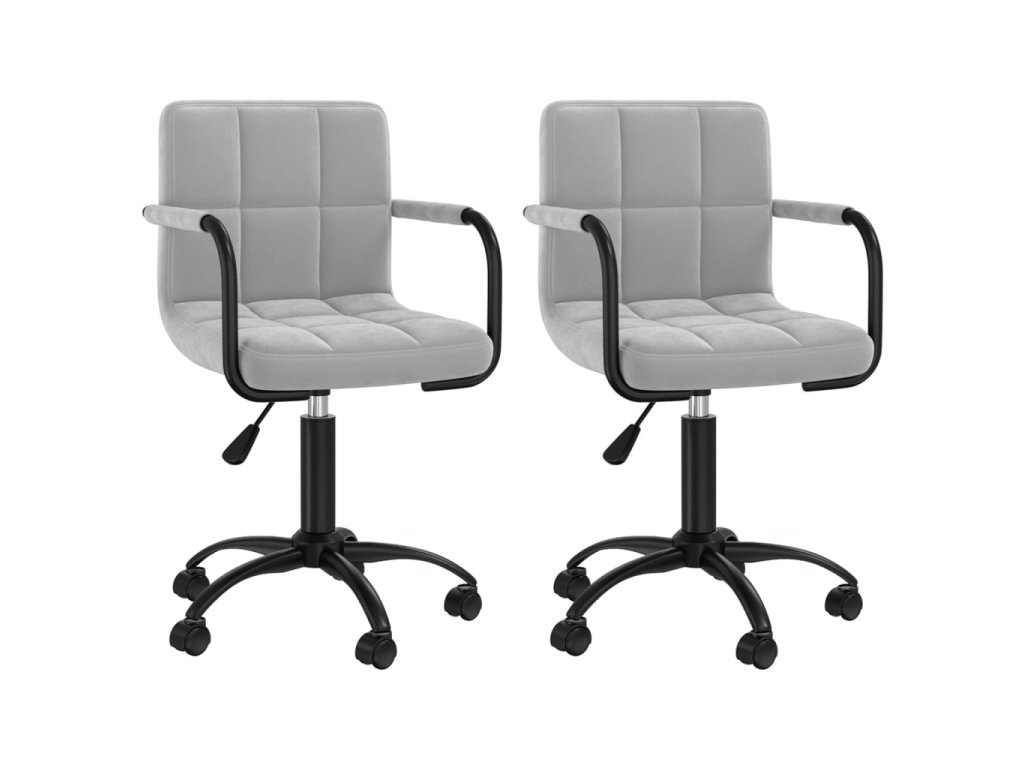 Otočná křesla jsou čalouněná sametem, který je příjemný na dotek, a zaručeně vám při sezení poskytnou optimální pohodlí. Práškově lakovaný ocelový rám zajišťuje vysokou odolnost. Výšku sezení si můžete nastavit pomocí mechanismu s plynovým pístem. Sedák se otáčí o 360 stupňů, což židli dodává výjimečnou flexibilitu. Pojezdová kolečka umožňují volný pohyb všemi směry.