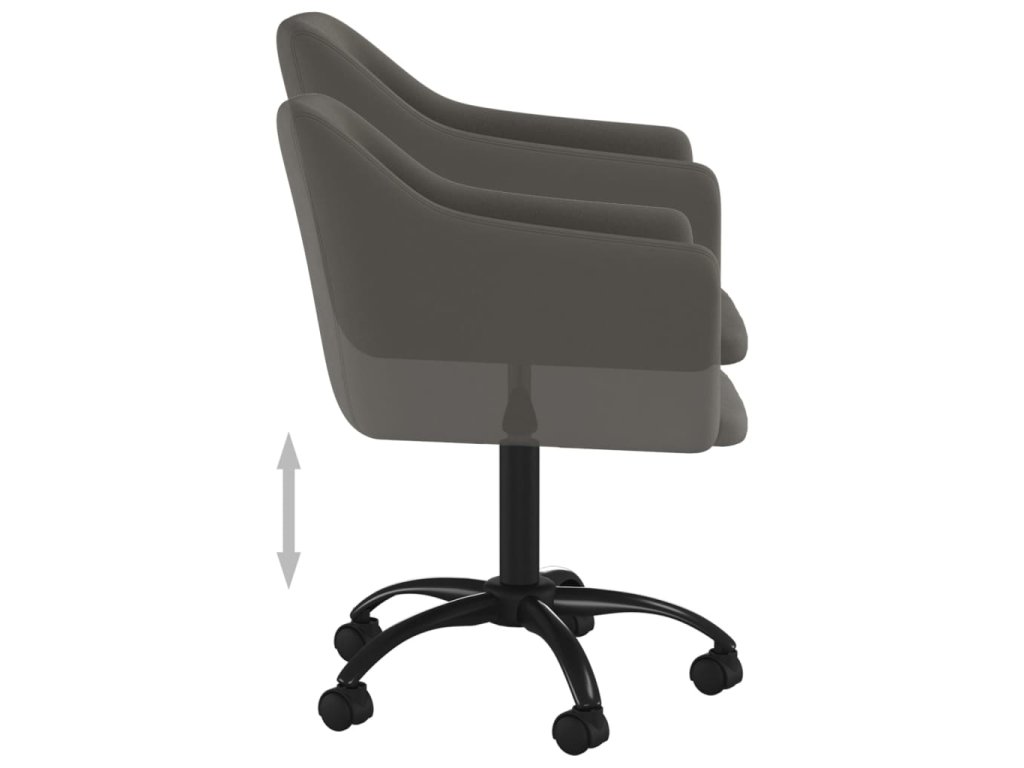 Otočná židle je čalouněná měkkým sametem a zajišťuje maximální pohodlí při sezení. Kovový rám je zárukou vysoké pevnosti a stability. Pomocí mechanismu s plynovým pístem si můžete nastavit výšku sezení dle vašeho přání. Židle se navíc otáčí o 360 stupňů, což jí dodává větší flexibilitu, a pojezdová kolečka vám umožní volný pohyb všemi směry.