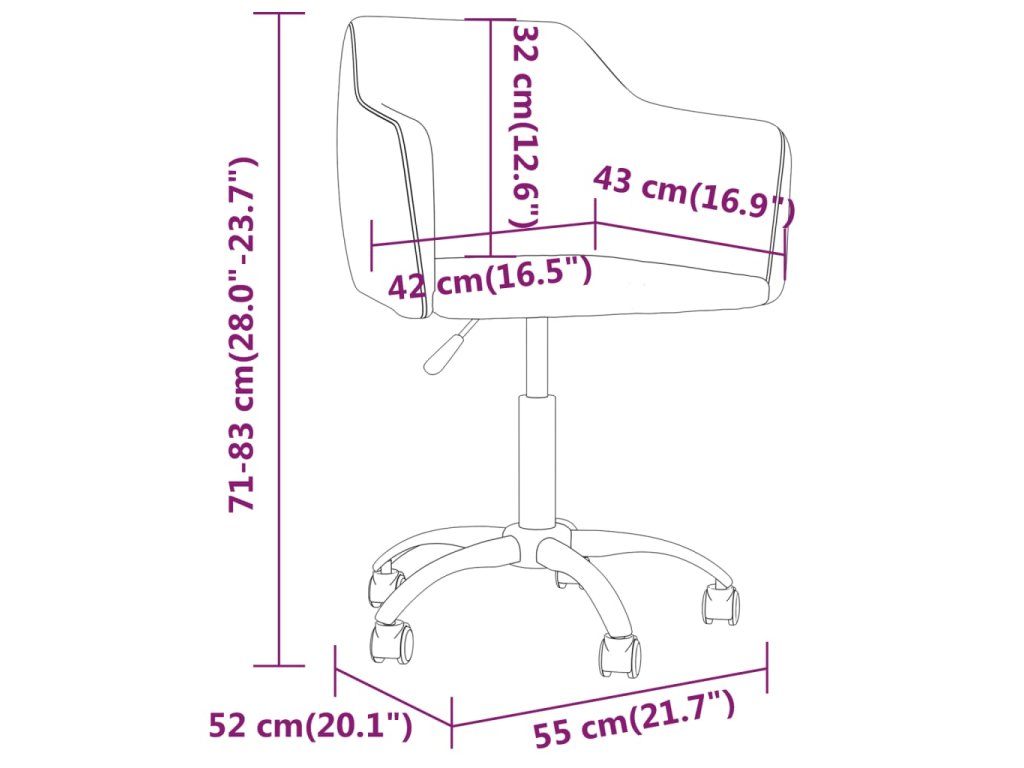 - Celkové rozměry: 55 x 52 x (71–83) cm (Š x H x V)