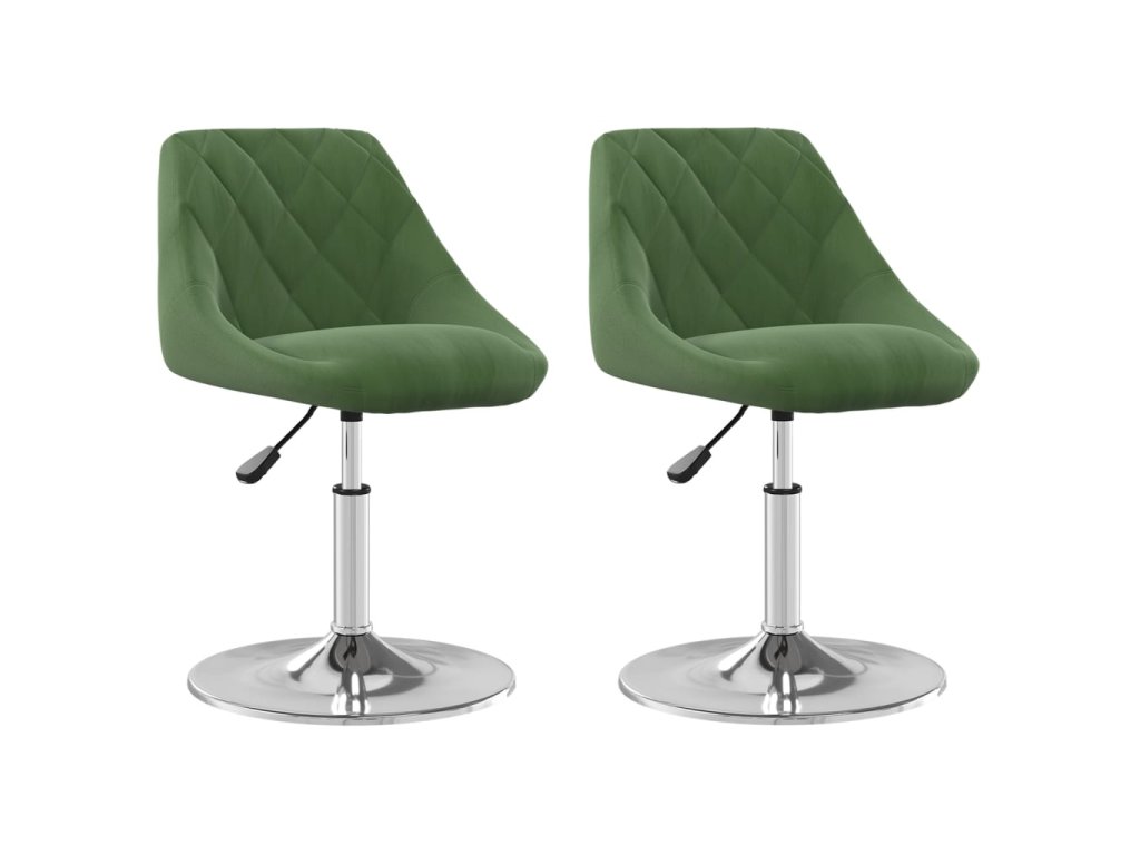 Tyto otočné židle jsou čalouněné na dotek měkkým sametem, což vám zaručí maximální pohodlí při sezení. Chromovaná ocelová podstava zaručuje mimořádnou odolnost. Výšku jídelních židlích lze nastavit pomocí mechanismu s plynovým pístem, i proto představují dokonalý doplněk do každé jídelny. Otáčí se o 360 stupňů, což přispívá k větší flexibilitě.
