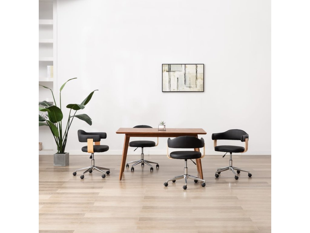 Židle vám poskytnou optimální pohodlí nejen při rodinné večeři, ale i při čtení či odpočinku v obývacím pokoji. Sedák a opěradlo mají ergonomický tvar a jsou čalouněné měkkou umělou kůží, takže se vám na židlích bude velice příjemně sedět. Dřevěný rám a ocelové nohy prodlužují jejich životnost a působí mimořádně atraktivním dojmem. Židli lze otáčet o 360 stupňů a výškově nastavovat prostřednictvím mechanismu s plynovým pístem.