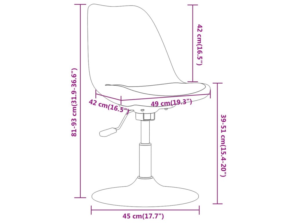 - Celkové rozměry: 49 x 45 x (81–93) cm (Š x H x V)