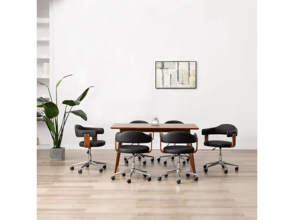 Židle vám poskytnou optimální pohodlí nejen při rodinné večeři, ale i při čtení či odpočinku v obývacím pokoji. Sedák a opěradlo mají ergonomický tvar a jsou čalouněné měkkou umělou kůží, takže se vám na židlích bude velice příjemně sedět. Dřevěný rám a ocelové nohy prodlužují jejich životnost a působí mimořádně atraktivním dojmem. Židli lze otáčet o 360 stupňů a výškově nastavovat prostřednictvím mechanismu s plynovým pístem.