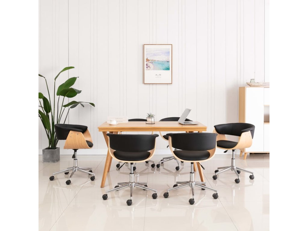 Židle jsou navíc velmi pohodlné, perfektní pro společné stolování v jídelním koutě a k odpočinku v obývacím pokoji. Sedák a opěradlo mají ergonomický tvar, jsou čalouněné měkkou umělou kůží a silně polstrované pěnovým molitanem, takže je židle mimořádně pohodlná. Dřevěný rám a kovové nohy přispívají k lepší odolnosti a zároveň působí velmi esteticky. Židle je otočná o 360 stupňů a je vybavena výškově nastavitelným mechanismem se systémem plynového zvedání.