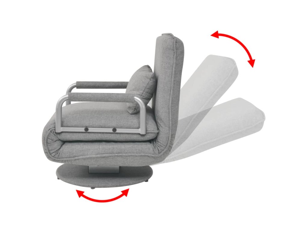Toto rozkládací křeslo, které v sobě spojuje pohodlí a praktičnost, bude pro vás skvělou volbou díky mnoha možnostem nastavení polohy pro sezení i ležení. Otočná židle se dá snadno proměnit v lenošku, polohovatelné křeslo nebo válendu, což je ideální, pokud trpíte nedostatkem místa, anebo pokud máte občas nečekané nocležníky.