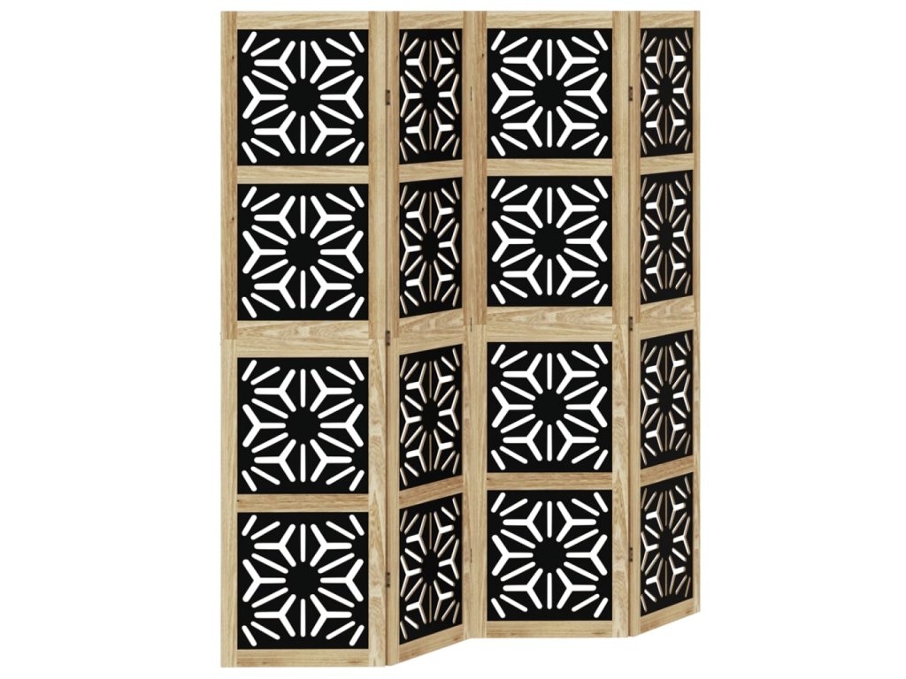 - Atraktivní vzhled: Tento skládací paraván s geometrickým výřezem dodává prostoru charakter a dekoraci.