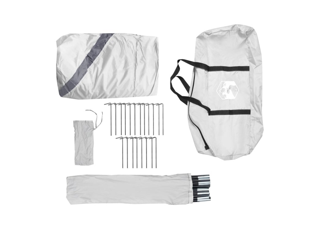 - Snadné sestavení a přenášení: Díky spojovacímu systému kolíků a kroužků je stavba a demontáž stanu rychlá a snadná. Lehká skládací konstrukce umožňuje zahradní stan snadno sbalit a uložit do přiložené tašky pro snadnou přepravu.