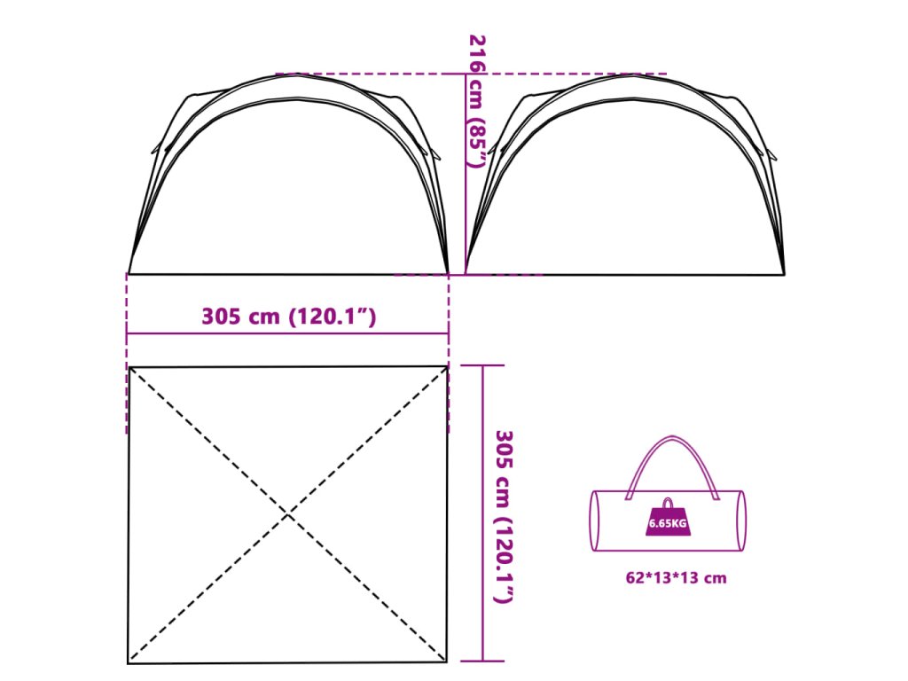 - Celkové rozměry: 305 x 305 x 216 cm (D x Š x V)