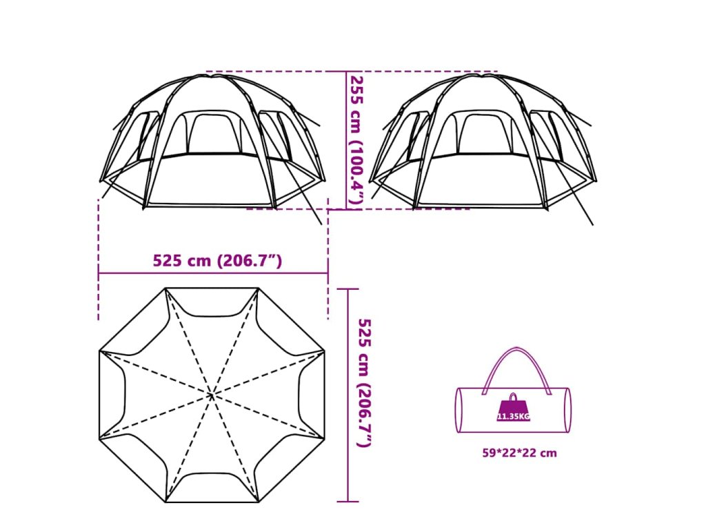 - Rozměry stanu: 525 x 525 x 255 cm (D x Š x V)