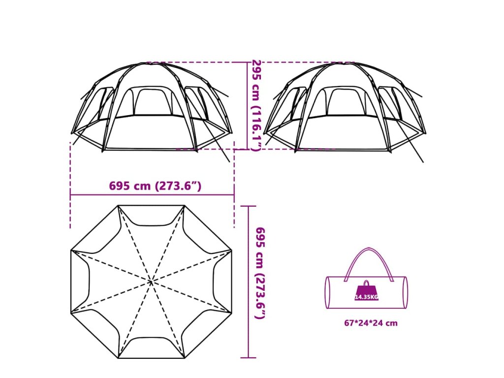 - Rozměry stanu: 695 x 695 x 295 cm (d x š x v)