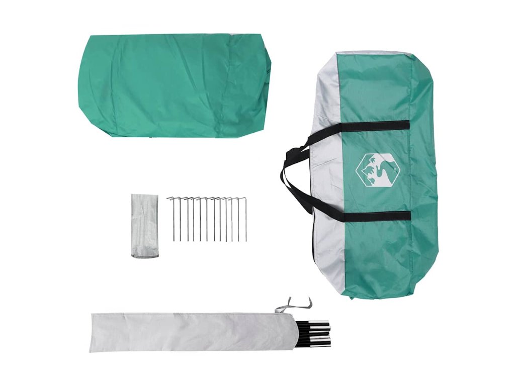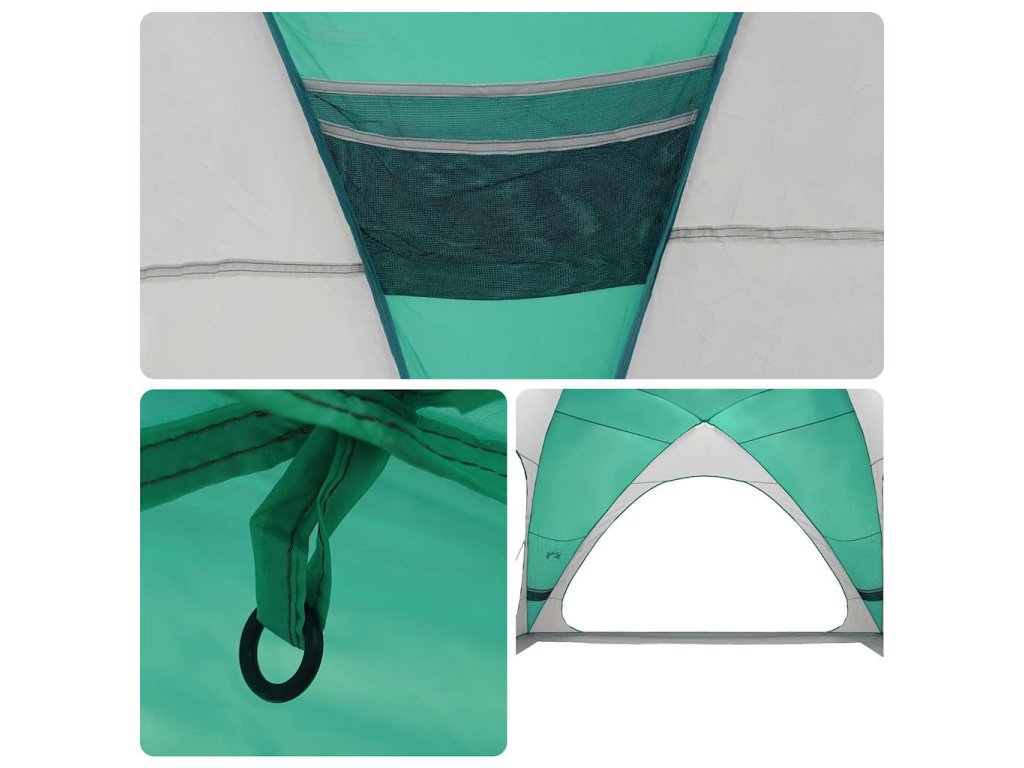 - Snadné stavění i balení: Díky vysoce flexibilním a lehkým tyčím ze skelných vláken a praktickému systému spojování pomocí kolíků a kroužků je stavění i balení stanu hračkou.