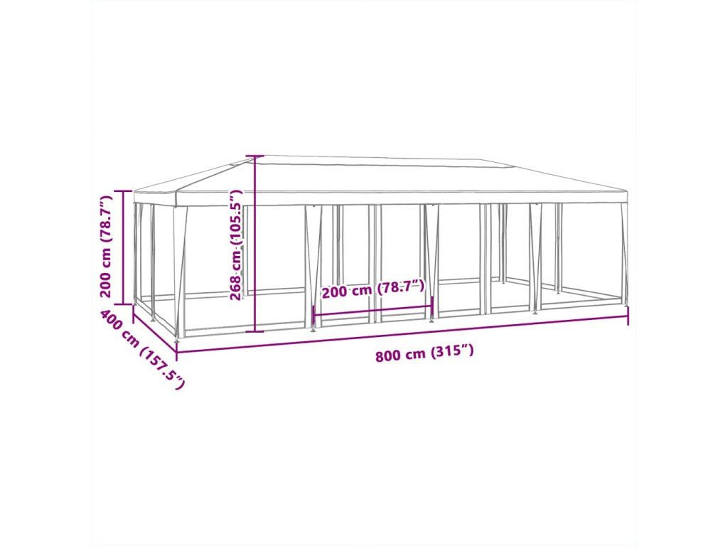 - Prvotřídní materiál: Tento party stan je vyroben z polyethylenu s vysokou hustotou (HDPE), který vás ochrání před přímým slunečním zářením a je dostatečně prodyšný. HDPE je speciálně upraven, takže je i voděodolný.