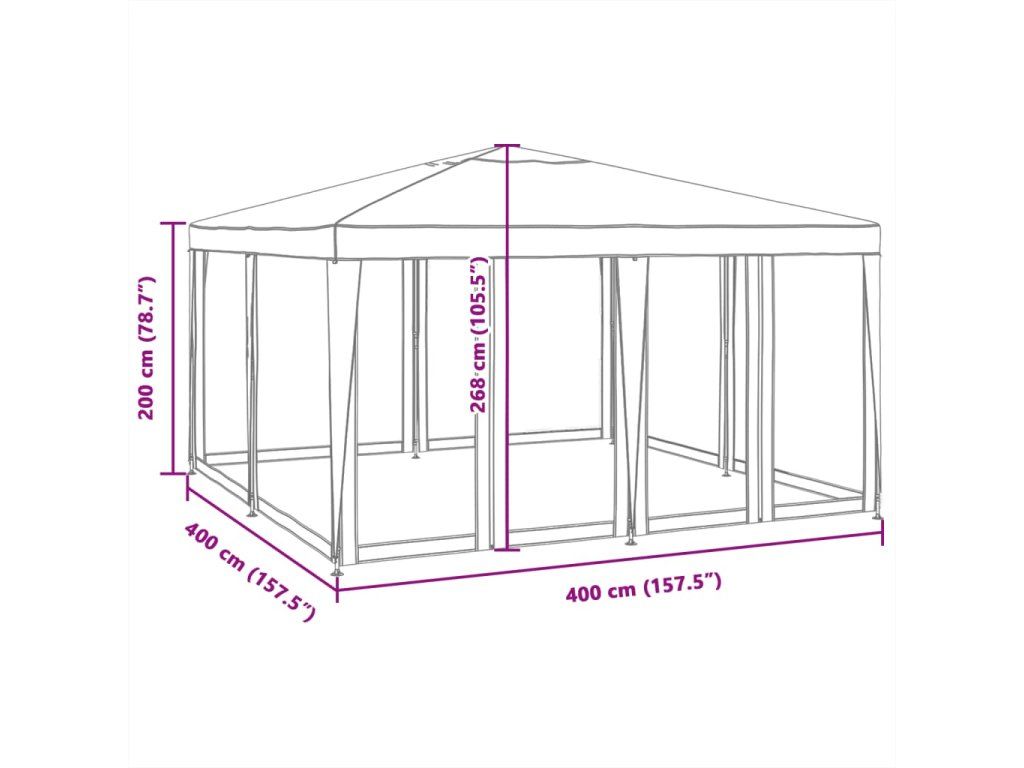 - Rozměry: 400 x 400 x 268 cm (D x Š x V)