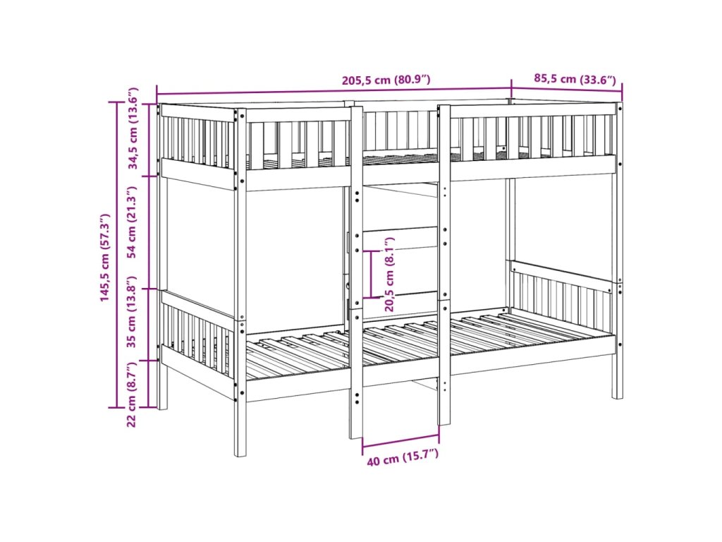Tento rám patrové postele je prostorově úsporné řešení se dvěma lůžky v jednom, takže je ideální pro ubytování hostů, přespávání a rodiny s více dětmi.