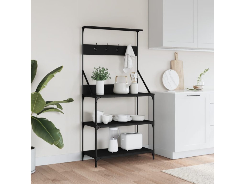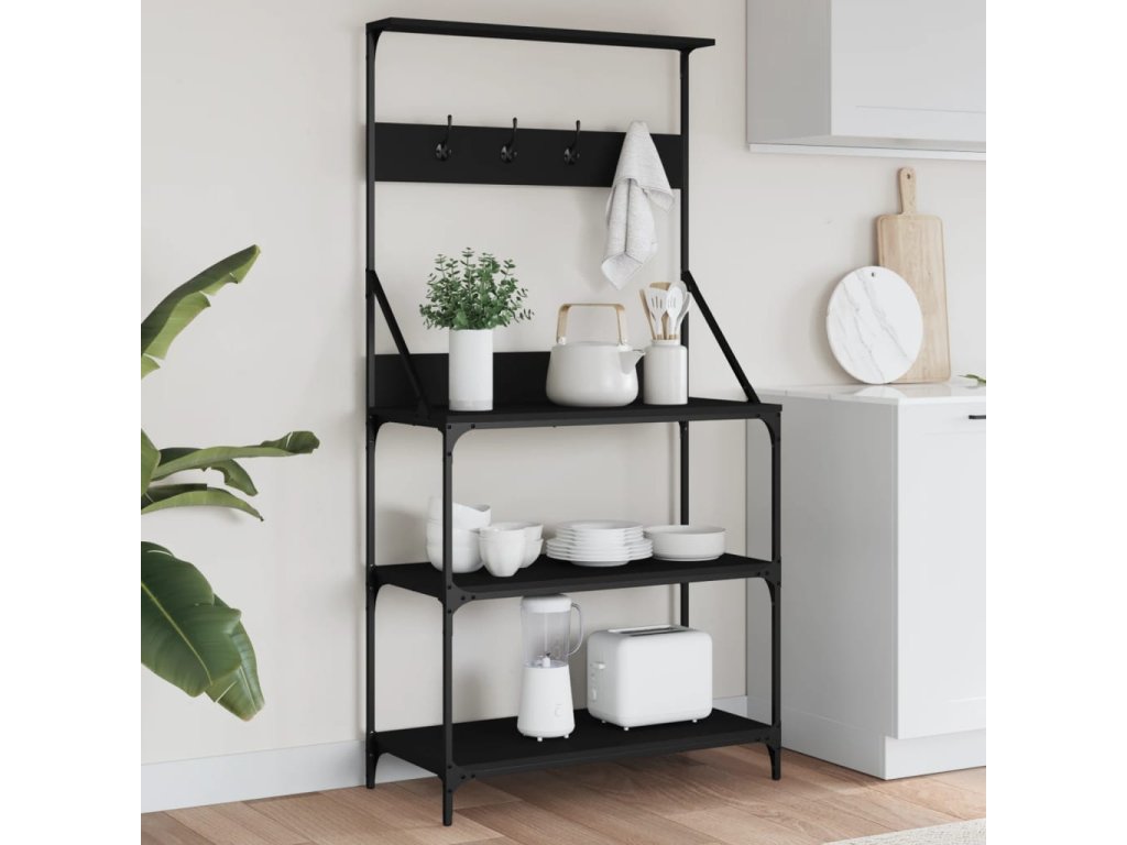- Odolný a robustní materiál: Kompozitní dřevo je mimořádně kvalitní, má hladký povrch a vyznačuje se pevností, stabilitou a odolností proti vlhkosti. Kovový rám kuchyňského regálu zajišťuje robustnost a stabilitu.