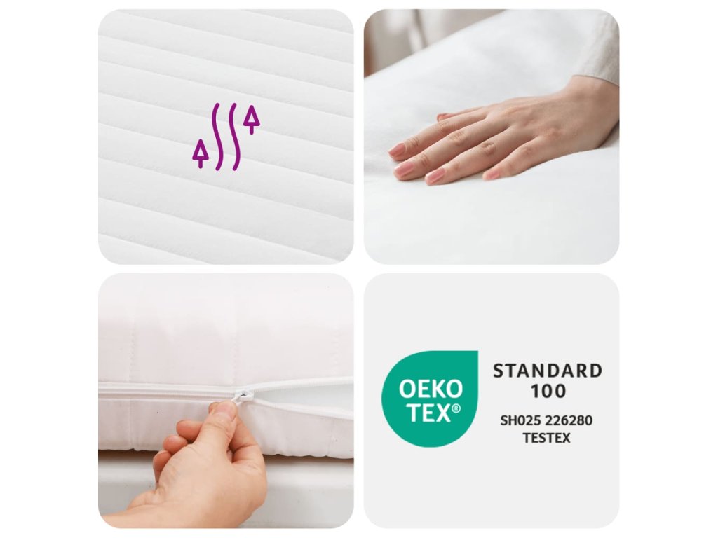 - Prodyšný potah: Potah matrace je vyroben z příjemné a prodyšné pleteniny, která zajišťuje dobrou regulaci vlhkosti a cirkulaci vzduchu.