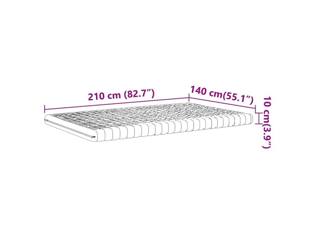 - Celkové rozměry: 140 x 210 x 10 cm (Š x D x T)