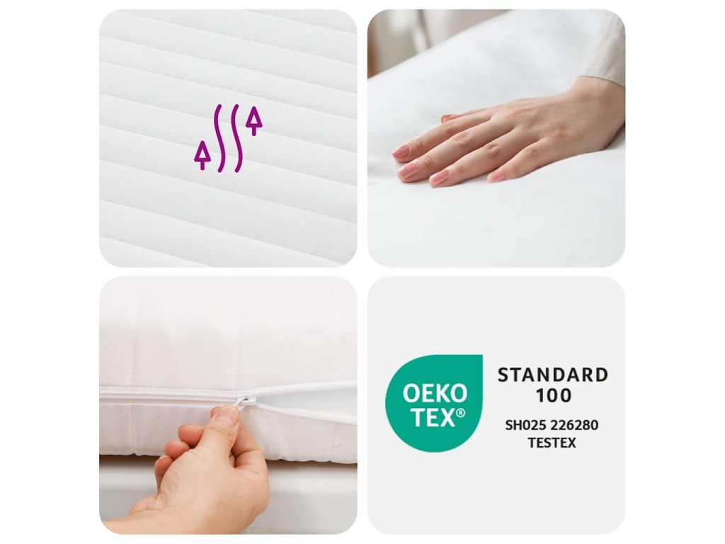 - Odolná tkanina: Potah matrace je vyroben z tkané látky, která je opatřena sametovým povrchem, takže je měkká a pohodlná.